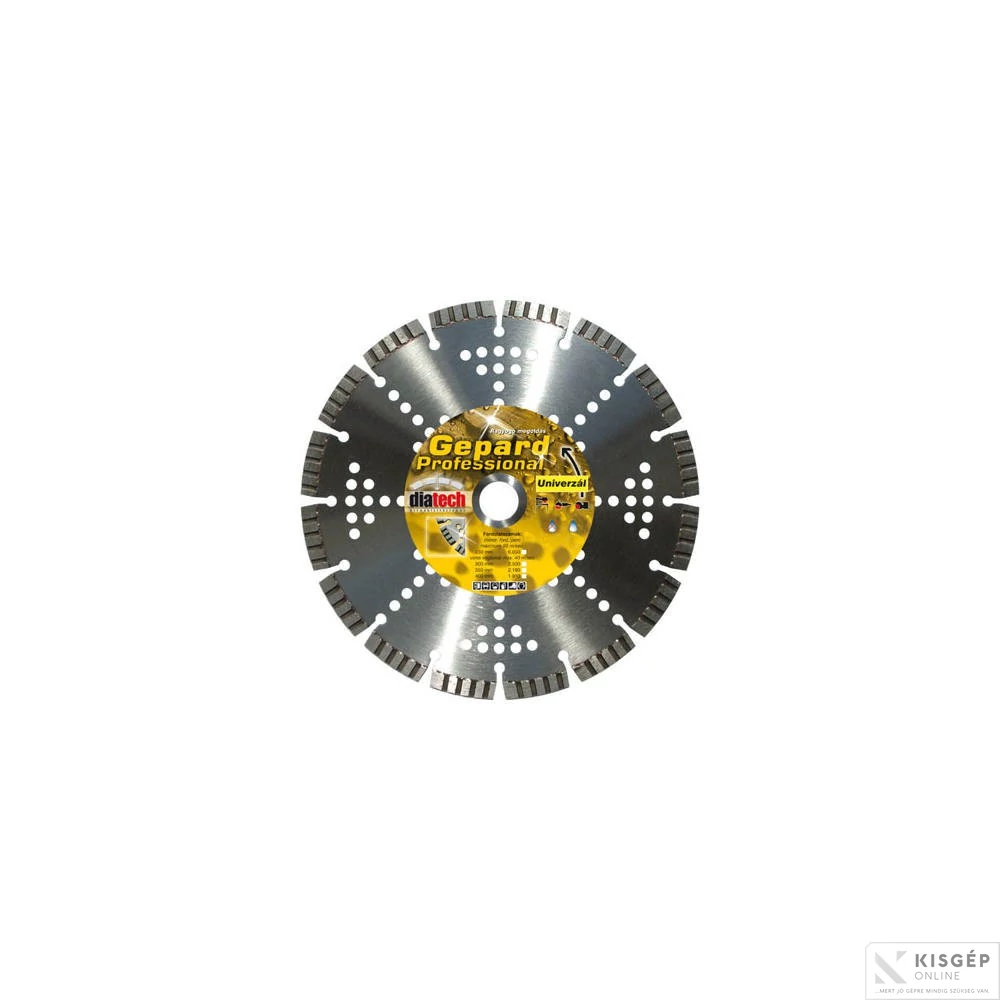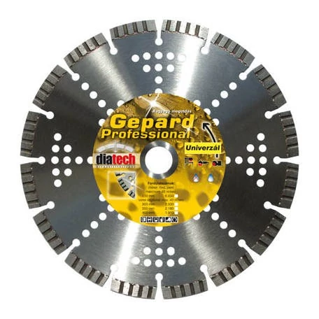 A Gepard kiváló minőségű és biztonságú vágótárcsa. A gyémántszegmensek speciális formája, azaz a turbókialakítás valamint az alaplemezen kialakított lyukak csökkentik a hőfejlődést, érezhetően növelik a vágási sebességet, és ritkább hűtési szüneteket tesznek lehetővé. Főleg beton, vasbeton vágásához javasoljuk, de általános használatra is alkalmas.